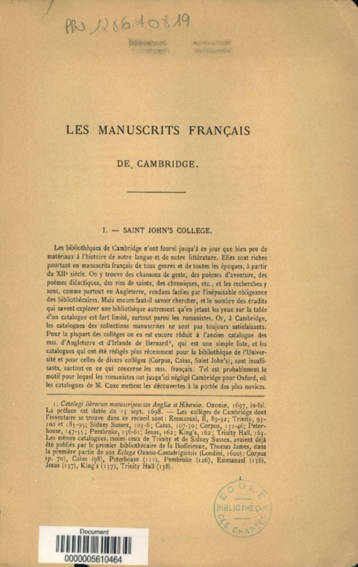 Les manuscrits français de Cambridge