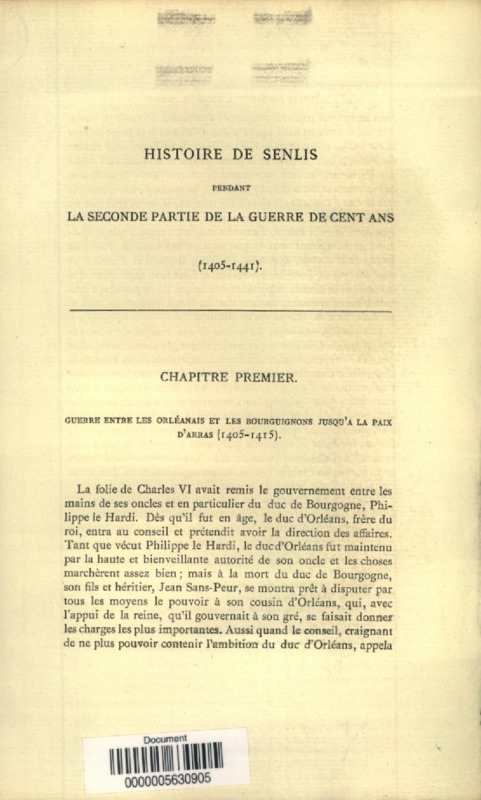 Histoire de Senlis pendant la seconde partie de la Guerre de Cent Ans, 1405-1441