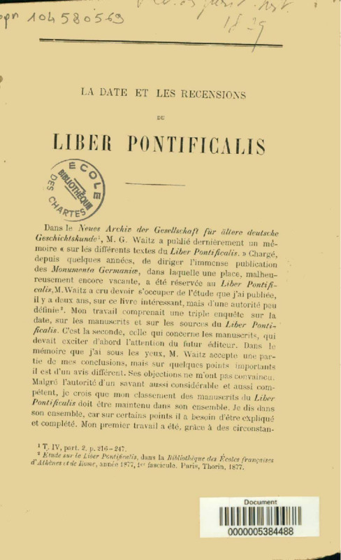 La Date et les recensions du Liber Pontificalis