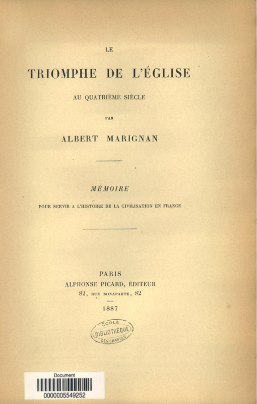 Le triomphe de l'église au quatrième siècle : mémoire pour servir à l'histoire de la civilisation en France