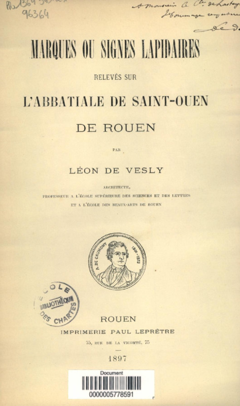 Marques ou signes lapidaires relevés sur l'abbatiale de Saint-Ouen de Rouen