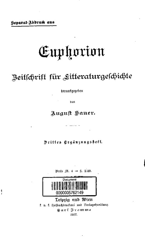 Euphorion : Beitschrift für Litteraturgeschichte
