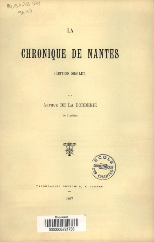 La chronique de Nantes, édition Merlet