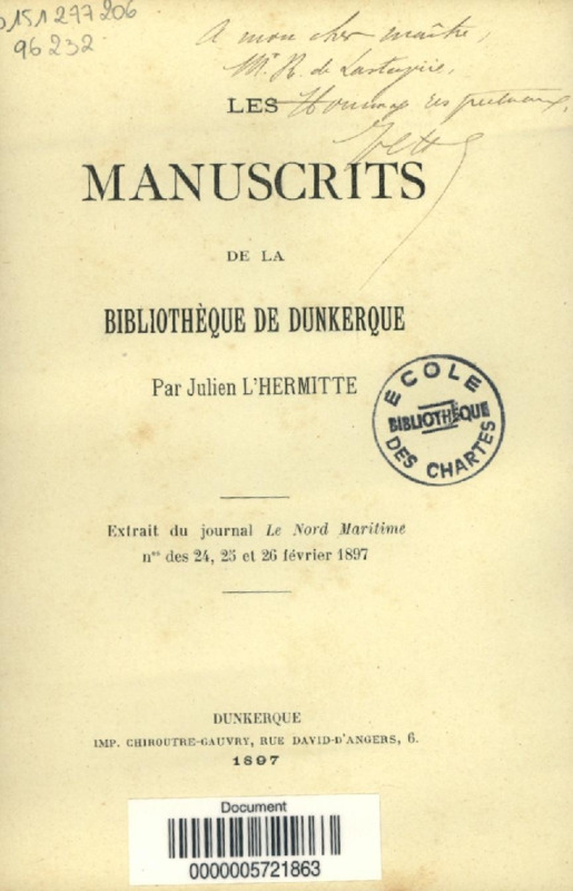 Les manuscrits de la Bibliothèque de Dunkerque