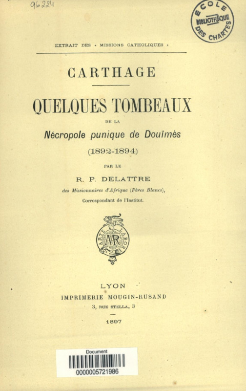Carthage : la nécropole punique de Douïmes fouilles de 1893-1894