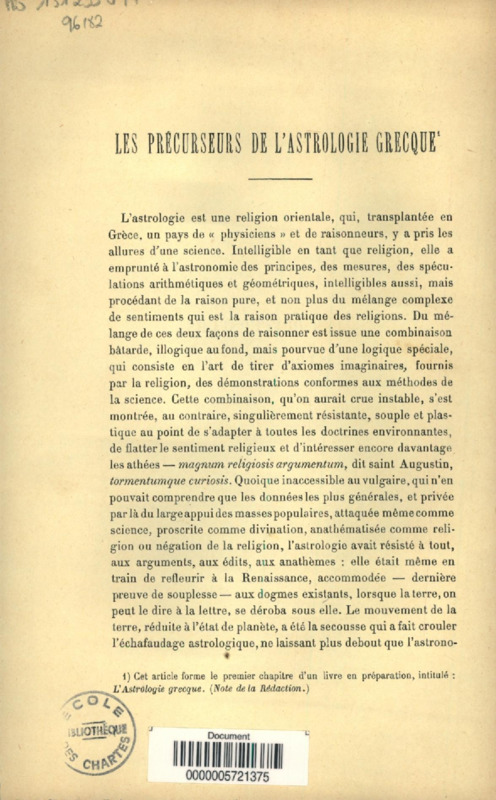 Les précurseurs de l'astrologie grecque