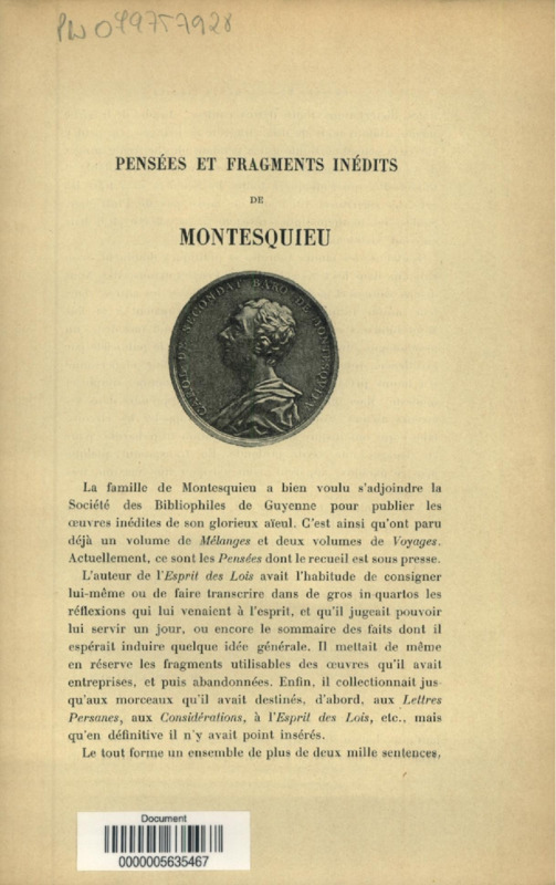 Pensées et fragments inédits de Montesquieu