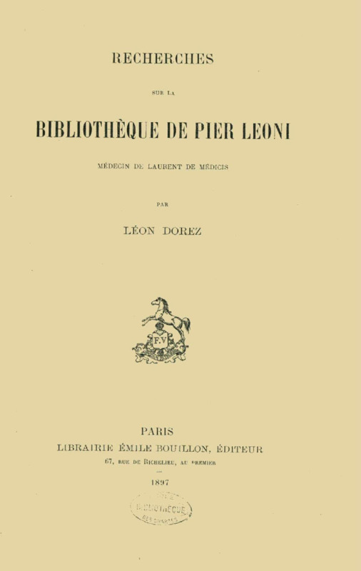 Recherches sur la Bibliothèque de Pier Leoni,...