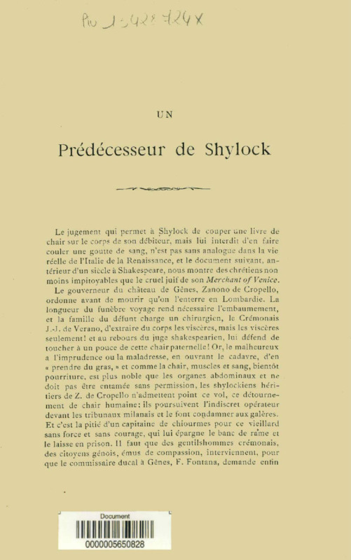 Un prédécesseur de Shylock : Document milanais