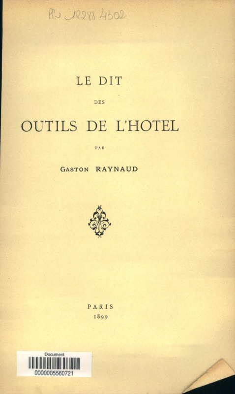 Le dit des outils de l'hotel@