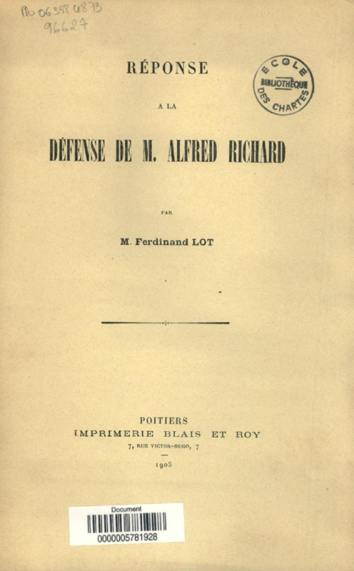 Réponse à la défense de M. Alfred Richard
