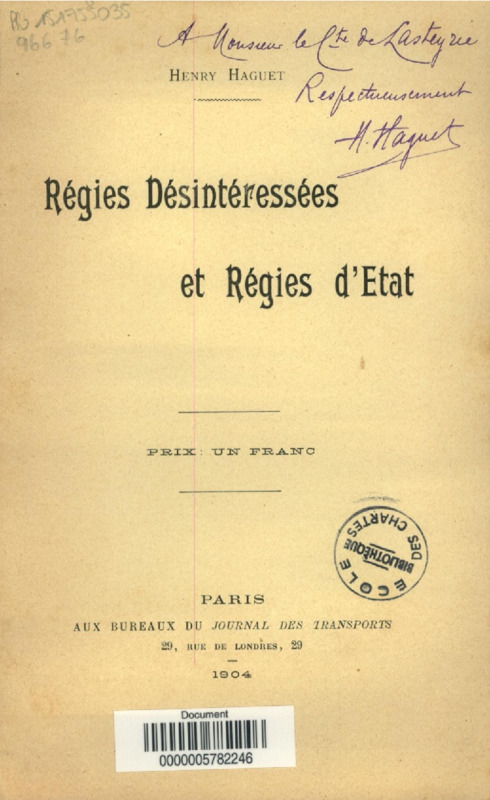 Régies désintéressées et régies d'Etat