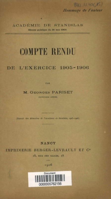 Compte rendu de l'exercice 1905-1906