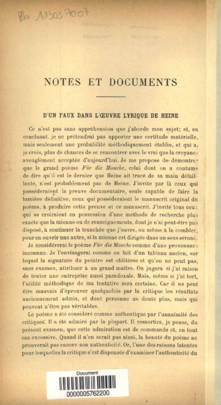 D'un faux l'oeuvre lyrique de Heine