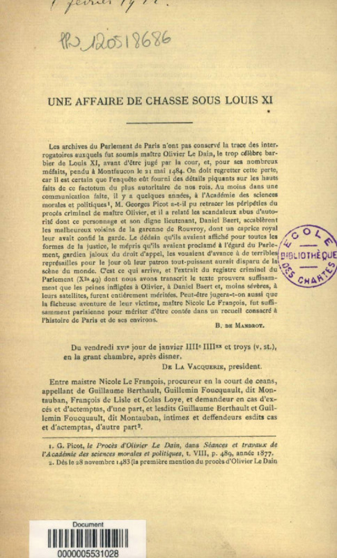 Une affaire de chasse sous Louis XI