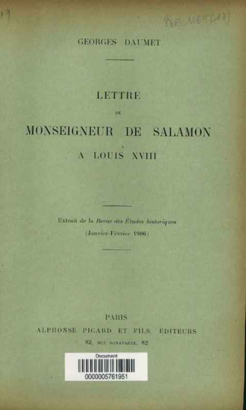 Lettre de monseigneur de Salamon à Louis XVIII
