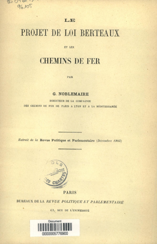 Le Projet de loi Berteaux et les chemins de fer