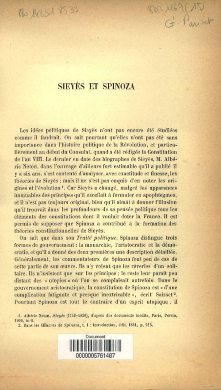 Sieyès et Spinoza