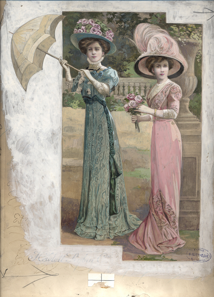 Deux élégantes dans un jardin