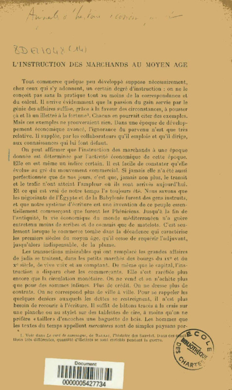 L'instruction des marchands au Moyen-âge