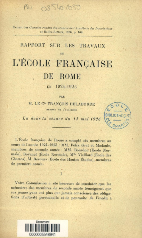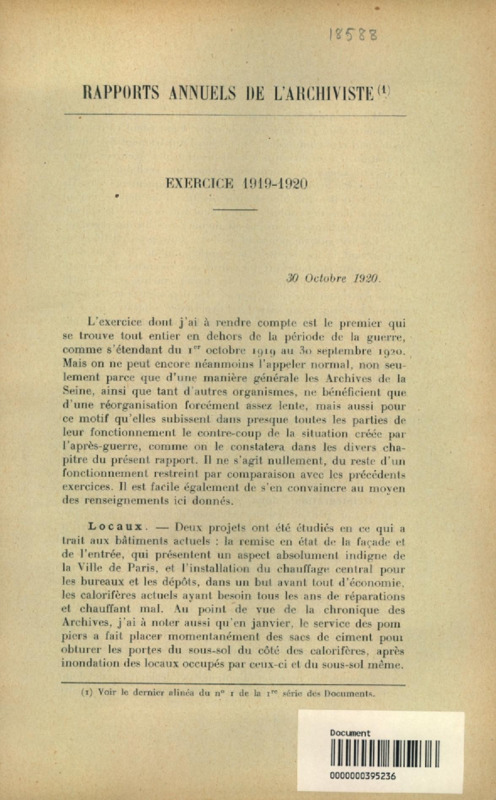 Rapports annuels de l'archiviste de 1920 à 1925