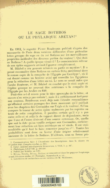 Le sage Bothros ou le phylarque Arétas?