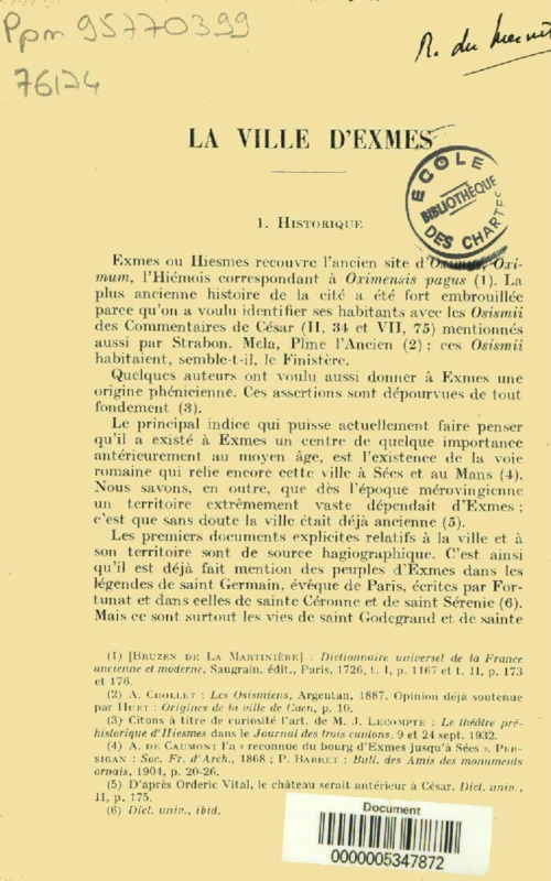 La ville d'Exmes