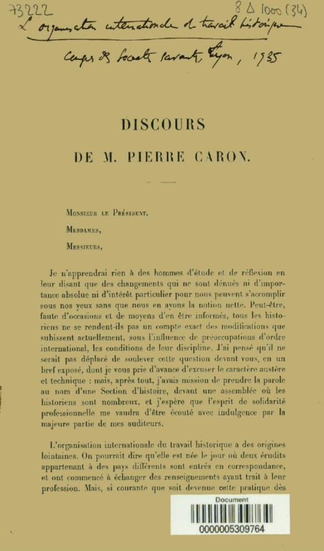 Dicours de M. Pierre Caron