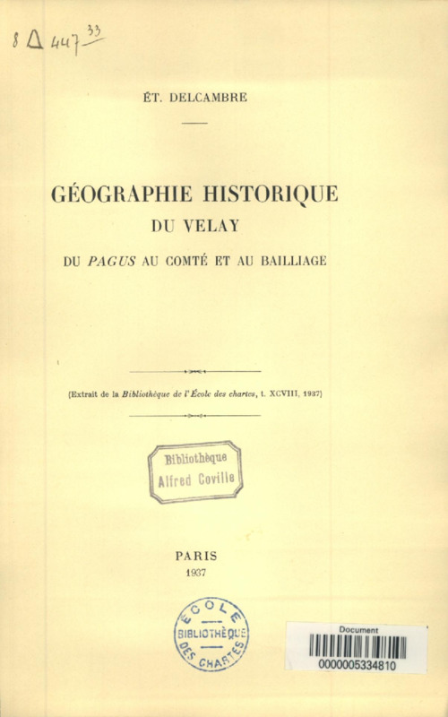 Géographie historique du Velay : du "pagus" au comté et au bailliage
