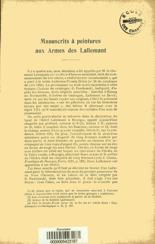 Manuscrits à peintures aux armes des Lallemant