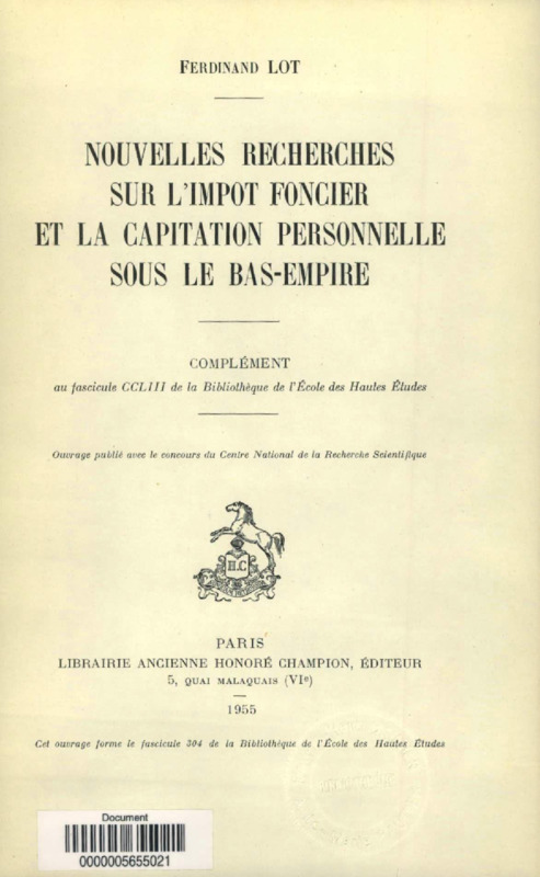 Nouvelles recherches sur l'impôt foncier et la capitation personnelle sous le Bas-Empire