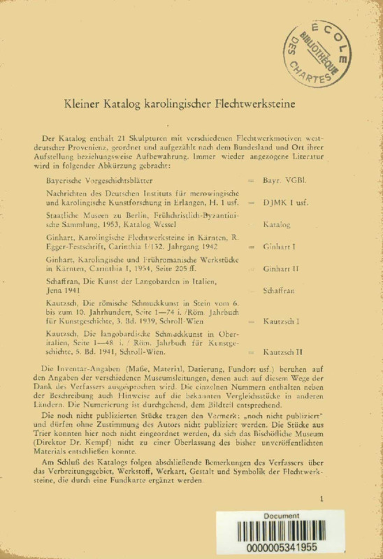 Kleiner Katalog Karolingischer Flechtwerksteine