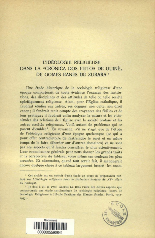 L' idéologie religieuse dans la "Crónica dos feitos de Guiné" de Gomes Eanes de Zurara