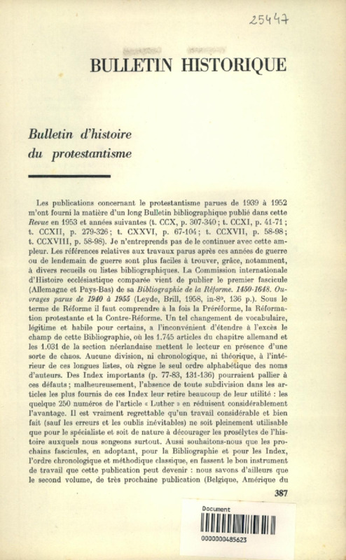 Bulletin d'histoire du protestantisme