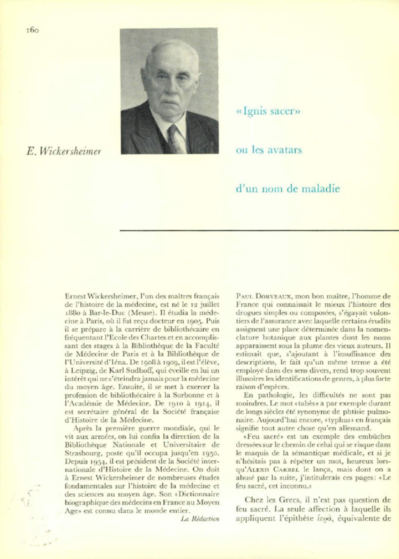 "Ignis sacer" ou les avatars d'un nom de maladie