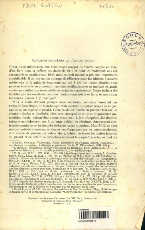 Quelques problèmes de l'ancien picard