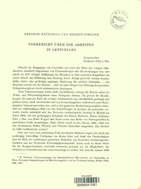 Vorbericht über die Arbeiten in Centcelles