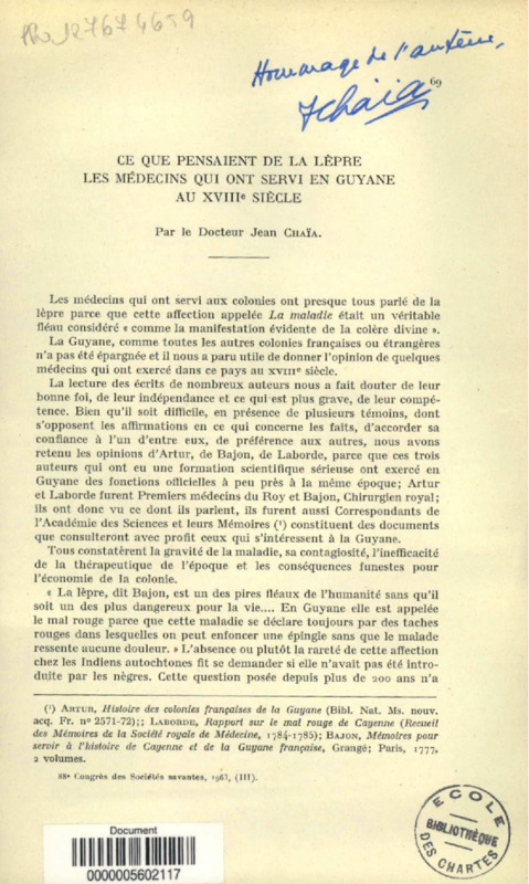 Ce que pensaient de la lèpre les médecins qui ont servi en Guyane au XVIIIe siècle