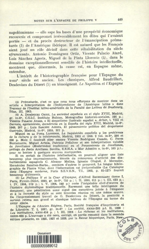 Notes sur l'Espagne de Philippe V, 1700-1746