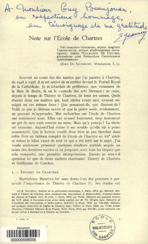 Note sur l'école de Chartres