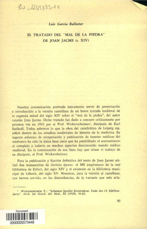 El tratado del "Mal de la Piedra" de Joan Jacme
