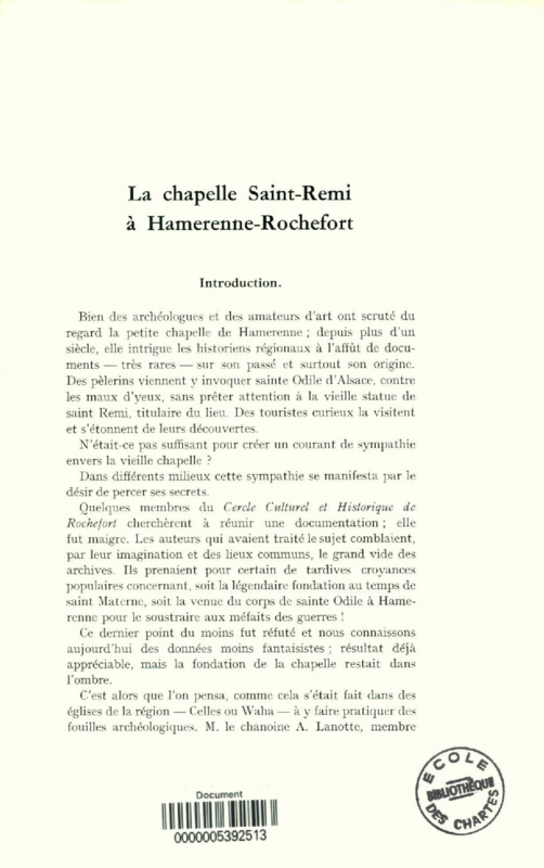 La chapelle Saint-Remi à Hamerenne-Rochefort