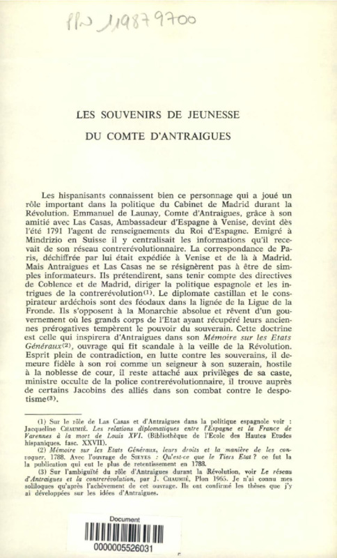Les souvenirs de jeunesse du Comte d'Antraigues
