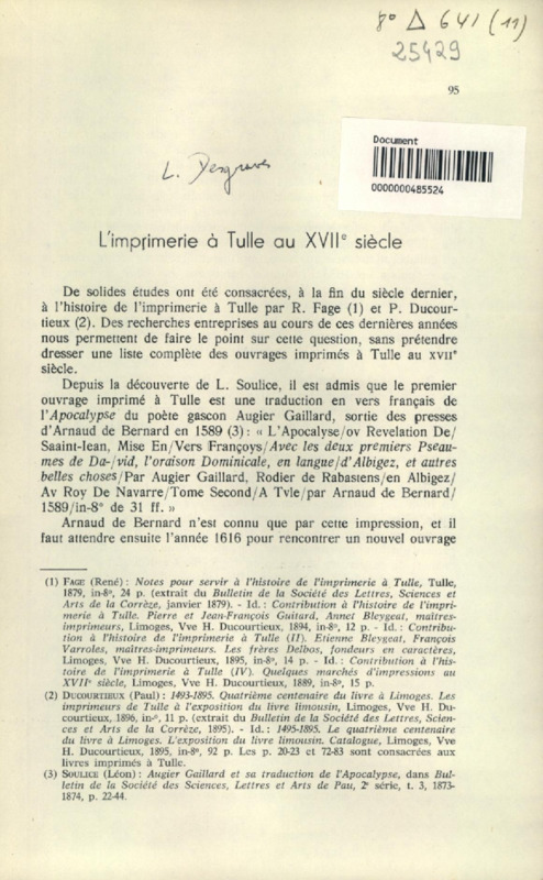 L'imprimerie à Tulle au XVIIe siècle
