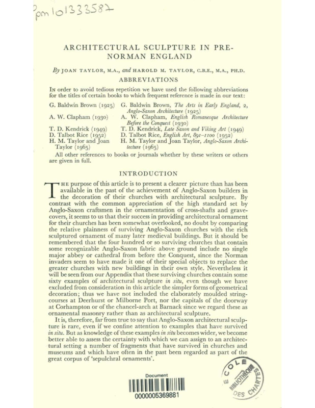 Architectural Sculpture in Pre-norman England