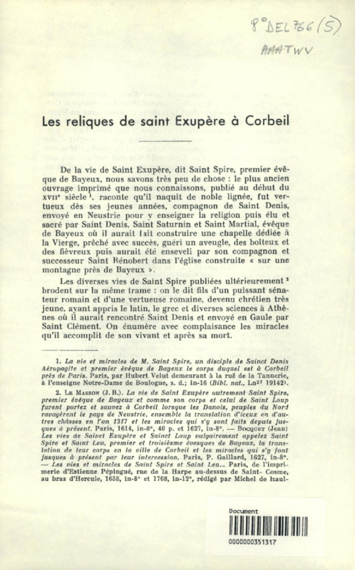 Les Reliques de saint Exupère à Corbeil
