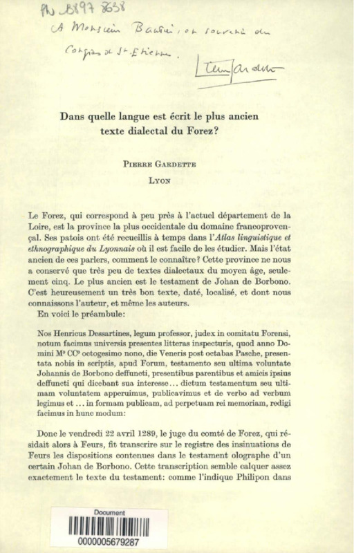 Le francoprovençal écrit en lyonnais et en forez au Moyen âge