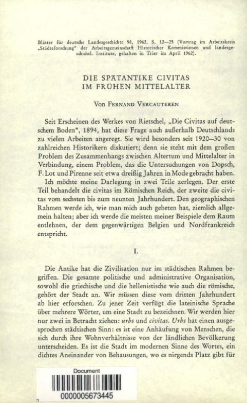 Die Spätantike Civitas im Frühen Mittelalter