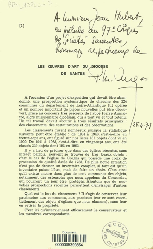 Les oeuvres d'art du diocèse de Nantes