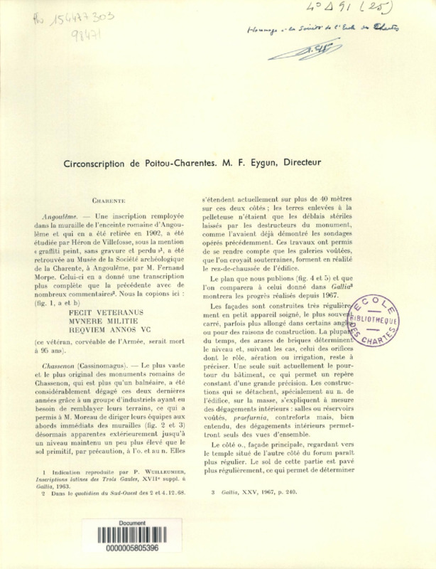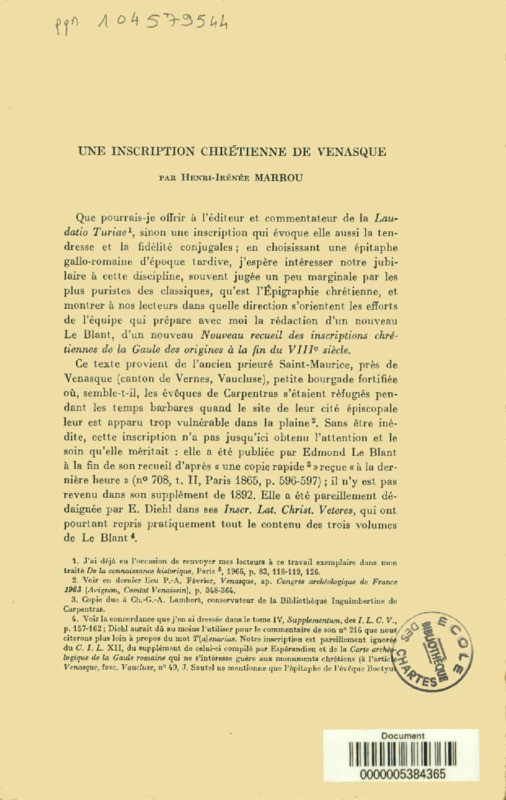 Une inscription chrétienne de Venasque